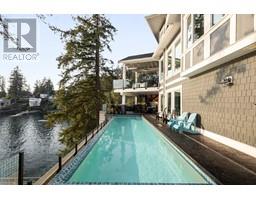 EXCLUSIVE WATERFRONT RESIDENCE w/sunset views & private dock. Beautiful 5286 SF craftsman home w/the charm & details that will endure the test of time. Custom layout provides privacy while offering sunny southerly panoramic water views from every room. Lovely front garden entry opens to an immediate ocean view that will mesmerize your guests on every visit. High vaulted ceilings, bay windows, stone fireplace & entertainers dream kitchen that flows to your outdoor spaces, 40´ infinity pool, hot tub & private slip for your water craft pursuits. A luxurious primary bedrm will delight the sophisticated couple w/spacious ensuite & balcony. Quality finishes, premium appl, AC, elevator, oak HW, travertine marble, sound system, rec room & wheelchair accessible. 15 min to P Moody Centre/45 to D/T Van. (id:12562)