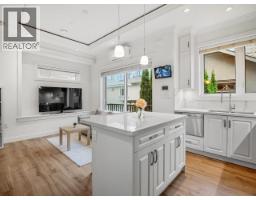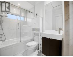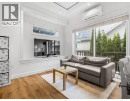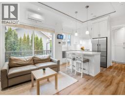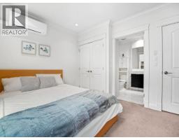 Incredible Collingwood half duplex tucked off the street. Tree-lined patio leads to tile entry with abundant built-ins and a two-piece bath. Quartz-topped island, white cupboards, marble backsplash, stainless steel appliances. Oversized sliding doors open from the living room to a deck overlooking the patio. Soaring ceilings with crown moulding and built-in speakers. Upstairs: second bedroom with private balcony and three-piece en suite; primary with built-ins, deep soaker tub, and separate marble shower. Ground-floor self-contained studio with separate entrance. Radiant heated floors and A/C. One block from Kingsway's restaurants, amenities, and transit. 3D virtual tour at Realtor's site. (id:12562)