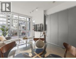 $507.17 MonthlyWelcome to MECCANICA by award-winning developer Cressey, a bright & modern large 1 bedroom + den home offering 699 square ft of well-designed living space. Flooded with natural light from large windows & over-height 9´+ ceilings, this meticulously maintained suite features engineered hardwood floors, roller blinds & A/C. The sleek kitchen offers high-gloss cabinetry, integrated European appliances, a gas cooktop & ample storage. The spacious den with expansive windows is perfect for a home office, while the flex room provides convenient in-suite storage. Includes 1 secured parking stall. Enjoy top-tier amenities: a fully equipped gym, party & meeting rooms & a rooftop terrace with BBQ. Unbeatable location steps to the Seawall, Olympic Village, Urban Fare, cafés, breweries, shops, and Skytrain. (id:12562)