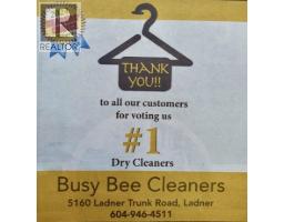 Dry Cleaning "Busy Bee Cleaners" at Ladner(Delta Manor). Located at busy big strip mall. Over 22 years by current owner. Retire sale. Well equipped business. Sales yearly over $240,000 before tax. One full time employee ($2,000 month). Lease 5 years starting April 2023. Gross rent $5,282.64 including GST. Top class machine "System K4" Italy Brand. Most of equipment are newer and regularly maintained. Steady business and huge potential for huge and active development currently. Sales increasing day by day. Rare opportunity. Welcome Enquiry and showing. Easy to show by appointment. (id:12562)
