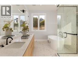 Tucked along a quiet street in prestigious Pebble Hill, this brand-new contemporary residence offers beautiful mountain and water views and over 5,100 sq.ft. of refined living on a 7,218 sq.ft. lot. A grand foyer with soaring ceilings opens to bright, open living spaces filled with natural light and hardwood floors throughout. The gourmet kitchen features premium appliances, custom cabinetry, a large stone island, and separate wok kitchen. Offering 7 bedrooms and an open den, including a serene primary suite with spa-inspired ensuite. Legal 2-bedroom suite with private entrance adds flexibility for extended family or mortgage helper. Radiant in-floor heating, A/C, HRV and media room. Ideally located close to top schools, parks, beaches and everyday amenities. (id:12562)