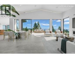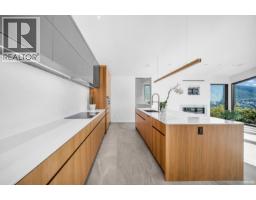 This modern masterpiece showcases clean architectural lines, expansive glass, and natural materials, offering panoramic ocean and city views. The main floor features bright open living spaces with high ceilings, floor-to-ceiling windows, and seamless flow to a large terrace. Gourmet and wok kitchens are equipped with high-end appliances and custom cabinetry. A rare dual primary suite layout provides ideal flexibility for families or multigenerational living, each with spa-inspired ensuites, walk-in closets, and private balconies. The lower level includes a spacious recreation room, home theatre, and direct access to the outdoor oasis with pool, hot tub, generous patio and the pool house. Thoughtfully designed for refined luxury and effortless modern living. (id:12562)