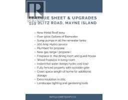 Looking for a cozy and efficient updated rancher with space and privacy? This UPDATED rancher on.34 acres is perfect for outdoor living, fully fenced for kids, pets and peace of mind. UPGRADES include 200 amp service, propane conversion (2024), INSTANT hot water (2024), metal roofs (2024), and updated windows (2023), The 1,813 square ft main floor offers 3 bedrooms, 2 bathrooms, galley style kitchen, laundry, pantry, wood fireplace, and gas fireplace. Enjoy decks on three sides with custom gates, a workshop below, and a 282 sqft heated studio or suite. EXTRAS include a woodshed, garden shed, carport, level parking, and 5,000 gallons of rainwater storage. Prime Bennett Bay location close to parks and beaches. Extended video tour and owners manual available! (id:12562)