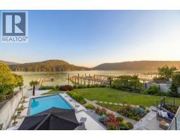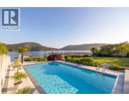 West Coast waterfront living at its finest. This exceptional low-bank property features a stunning 8-year-old custom home with impeccable craftsmanship throughout. Enjoy seamless indoor-outdoor living with an oceanfront pool, retractable deck cover, and a recently rebuilt private dock suitable for large yachts and floatplanes. The open-concept main floor is ideal for entertaining, showcasing breathtaking views and a chef-inspired kitchen. The spacious primary retreat offers a walk-in closet and spa-like ensuite. Downstairs includes a large rec room, sauna, and a two-bedroom in-law suite. Complete with geothermal heating/cooling, rainwater irrigation cistern, heated driveway, and elevator. A rare and spectacular waterfront offering that must be seen to be fully appreciated. (id:12562)