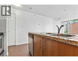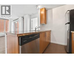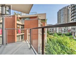 This 582sf, 1 bedroom + office, corner unit has plenty of natural sunlight coming in from 2 large glass walls facing the lovely courtyard. The living room and bedroom have upgraded laminate flooring. The large covered balcony faces the courtyard. The kitchen comes with two rows of rich walnut veneer cabinets, granite countertops, breakfast bar, and stainless steel appliances. Large format floor tiles cover from the foyer to the kitchen. The 4pcs bathroom has polished chrome single lever faucet, a large mirror and tiled floors. The bedroom also has courtyard view. Rent includes 1 parking stall and 1 bike rack. (id:12562)