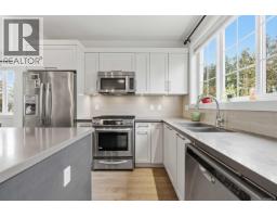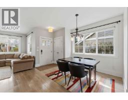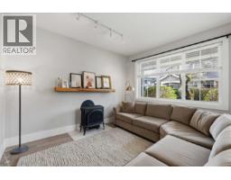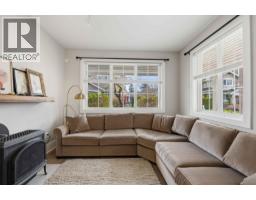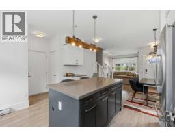 $393.13 MonthlyMODERN FINISHINGS, EVERYDAY CONVENIENCE, AND PEACEFUL TRANQUILITY! Gorgeous half duplex-style 3 bedroom, 2.5 bath townhome of approximately 1300 sqft in sought-after Village Green, backing onto treed space and agricultural ALR land. Fantastic main floor layout features a bright, gourmet shaker-style kitchen with ample cabinetry and quartz countertops, complete with island and stainless appliances. Spacious living rm with bonus free-standing gas fireplace for cozy evenings. 3 bdrms up incl spa-inspired primary with large windows and full ensuite. EV TESLA CHARGER INSTALLED! Enjoy treed views from the kitchen or while relaxing in the fenced yard or on the large west-facing patio with gas BBQ hook-up. Single car garage plus driveway. Close to schools, shopping, and transportation! THE COMPLETE PACKAGE (id:12562)