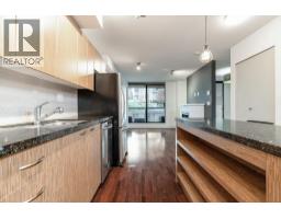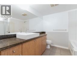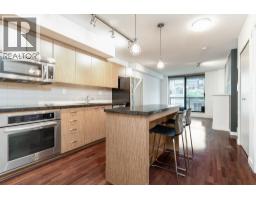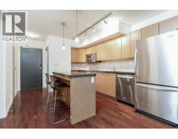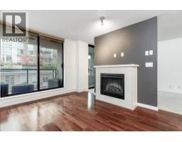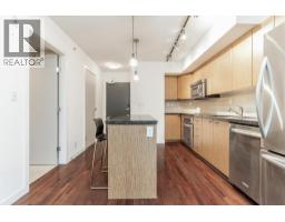 This 635sf 1 bedroom + den + flex + balcony condo has a unique and functional layout and engineered wood floors in living areas. The foyer takes you straight into the open rectangular living dining room with a fireplace, track lights and access to the covered balcony. The open kitchen features stainless steel appliances, a long row of veneer cabinets, granite countertops, tiled backsplash, and a center island with breakfast bar and pendant lights. Next to the living room is the unique semi-open bedroom with mirrored closet doors, ceiling chandelier, and a sliding glass door access to the den. The 4 pcs bathroom comes with end to end mirror, granite countertop, above counter sink, veneer cabinets and separate tub and shower stall. Rent includes 1 locker and 1 parking stall. (id:12562)