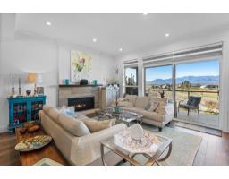 Thoughtfully designed 3 storey home offering 5 bedrooms+ den and 4 bathrooms! Enjoy stunning golf course views from every level, highlighted by soaring 14' ceilings, hardwood floors, quartz countertops & high-end stainless appliances, inc a natural gas range. The lower level includes a double garage, media room, 2 bedrooms, full bathroom & separate entry w/ suite rough-ins for an easy future conversion. The main living space features an open layout with a statement kitchen, spacious dining area, front-facing deck & a quiet den/library overlooking the ALR w/incredible sunset views. Upstairs you'll find the primary retreat with 2 walk-in closets and full ensuite, plus 2 additional generous bedrooms & another full bath. Low monthly bare land fees, limited restrictions, & plenty of parking! * PREC - Personal Real Estate Corporation (id:12562)