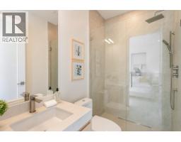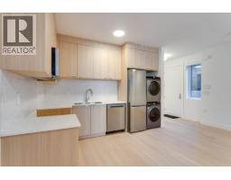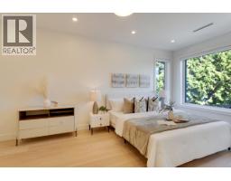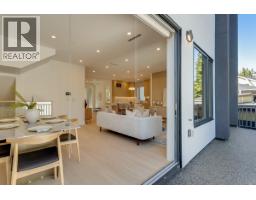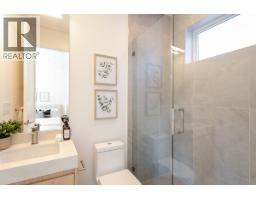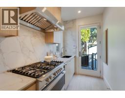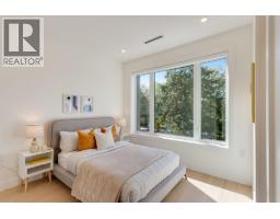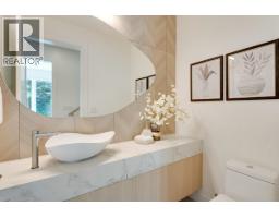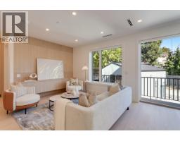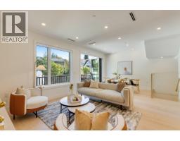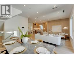 Quiet and modern brand new 1/2 duplex in central location facing Arbutus Greenway. 'ACM' metal facing and metal wood looking soffit. 9' ceiling on each floor including basement. Bright and spacious layout. High quality finishing throughout. Elegantly designed for 75" TV wall wood cabinet in Living Room. Fisher & Paykel kitchen appl on Main. Wok kitchen. Wine cooler. Foldable sliding door to the deck. Flex/Bdm with ensuite and a Den on Main. 2/F 3 bedrooms all ensuited. Basement has 2 bdms legal suite for mortgage helper. Media Room for entertainment plus full bath. Air-conditioning, HRV, Intercom, Security sys with video camera, sprinkler sys, Hidera vacuum sys. Close to 2 levels of schools and all private schools. Professionally staged. (id:12562)