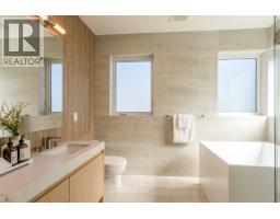Quiet & modern brand new 1/2 duplex in central location facing Arbutus Greenway. This side is occupying 7045 sf of limited common property. 'ACM' metal facing and metal wood looking soffit. 9' ceiling on each floor incl basement. Bright and spacious layout. High quality finishing thru-out. Elegantly designed for 75" TV wall wood cabinet in L/R. Fisher & Paykel kitchen appliances on Main. Wok kitchen. Foldable sliding door to the deck. Flex/bdm w/ensuite and a Den on Main. 2/F all 3 bedrooms ensuited. Basement has 2 bdm legal suite. A Media Room and a Hobby Room plus full bath. Air-conditioning, HRV, Intercom, Security sys with video camera, sprinkler system, Hidera vacuum sys. Close to 2 levels of schools and all private schools. Professionally staged. OPEN HOUSE SAT/SUN 2-4PM FEB28/MAR1 (id:12562)