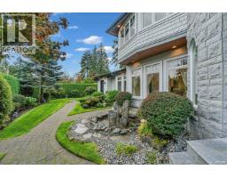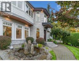 Experience refined luxury and modern elegance in this beautifully crafted residence. The main level features Italian-imported marble flooring. The open-concept kitchen showcases a striking central island, Miele and Gaggenau appliances, complemented by a fully equipped wok kitchen for added convenience. Upstairs offers four spacious bedrooms, including a lavish primary suite with a spa-inspired ensuite, a walk-in closet with clothing sterilizer, and direct access to a heated sunroom balcony. Additional highlights include custom LED lighting system, waterfall landscaping, and a mountain-view gazebo, four fireplaces, A/C, radiant heating, EV charging etc. The entertainment area on the main floor features a private entrance, providing excellent suite potential for rental or guests. This home perfectly blends modern luxury with thoughtful functionality. Conveniently located near top-ranked public schools, Park Royal shopping centre, and all essential amenities. (id:12562)