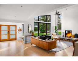 Set in the highly desirable Forest Knolls neighbourhood, this architect-designed home offers peaceful country privacy just minutes from Fort Langley with easy highway access. Natural light fills the home, highlighting maple hardwood floors, designer fixtures, and premium appliances including a Fisher & Paykel fridge, KitchenAid 36-inch dual-fuel range, and Miele dishwasher. The primary suite features a nearly 6-foot solid-surface soaker tub and sunset views through private backyard trees. A separate ground-level entrance offers flexible space for guests, family, or potential revenue. Professionally renovated in 2019 with an attached double garage, updated electrical and plumbing, 200-amp service, RV hookups, on-demand hot water, and a high-efficiency wood-burning fireplace. (id:12562)