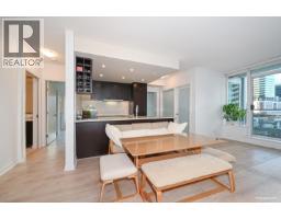 $746.26 MonthlyBright NW-facing 2 bed + den + flex corner unit at Raffles on Robson. This well-designed home features mountains & city views, a covered balcony, and 3-year new laminate flooring. The modern kitchen offers granite counters, sleek cabinetry, and premium appliances by Miele. Bathrooms are finished with marble counters, porcelain tile, and a rain shower. Functional layout with in-suite storage and 1 parking included. Building amenities: gym, hot tub, media room, and more. Rentals and 1 pet (cat or dog) allowed. Steps to Yaletown, Seawall, transit, dining, and shops. (id:12562)