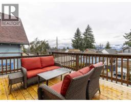 CHARACTER! Beautiful pre-WW1 home with vintage details perched at the top of the hill & elevated above the street, offering added privacy, views + light. Top floor has 3 beds +1 bath with claw tub. Big deck off bedroom shows off panoramic views. Main floor has it all, grand living room with stained glass + over height ceilings, updated kitchen flows into bright dining room with skylights & sliding door onto 2nd big deck + a guest bedroom + an office. Original fir floors throughout, heated floors in main floor bath. Fully finished basement easily accessed or closed off from main floor + its own patio. 200 amps. 3 storage rooms incl a big workshop - so much room for your all your hobbies! Great back yard with gardens. 2 pkg spots off the alley. (id:12562)
