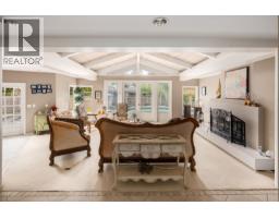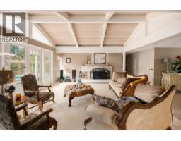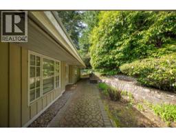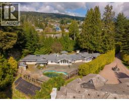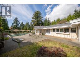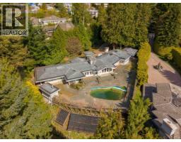 Discreetly set on an exceptional 31,537 sq/ft estate property, this West Vancouver residence offers a sense of privacy, space and quiet. With 4 generously sized bedrooms and 4 bathrooms (3 full, 1 powder) giving the home a comfortable and functional layout. Vaulted ceilings with exposed beams add a sense of volume and character, while a row of windows and French doors invite in natural light from every angle and offer a seamless transition to the outdoor area. Kitchen with custom dark wood cabinetry provides a rich contrast to the light stone countertops, all Miele appliances and a large central island. A private backyard retreat complete with a pool and spa designed for quiet relaxation and easy outdoor living. (id:12562)