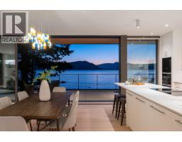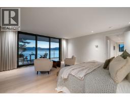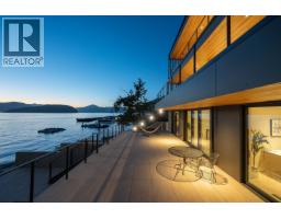 Experience 5,679 square ft of extraordinary modern waterfront living in West Vancouver, an architectural masterpiece crafted to perfection. Just 15 minutes from Park Royal, this brand-new residence showcases flawless design with dramatic floor-to-ceiling Reynaers windows, sliding doors, elevator, and fire-resistant Linarte siding. Offering 5 bedrooms, 5 bathrooms, an office, self-contained guest suite, and an expansive studio opening to the courtyard, every detail exudes luxury. Oversized patios on every level frame panoramic ocean views-watch whales, marine life, and golden sunsets. A gated entrance, forest path, Zen creekside seating, landscaped courtyard, outdoor lighting, irrigation with rainwater capture, and private boat lift complete this one-of-a-kind estate. (id:12562)