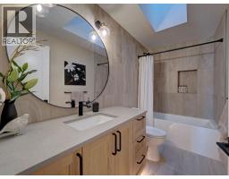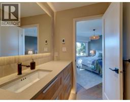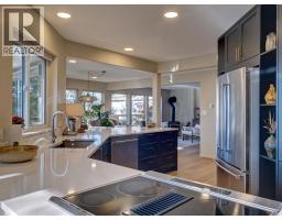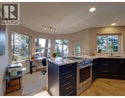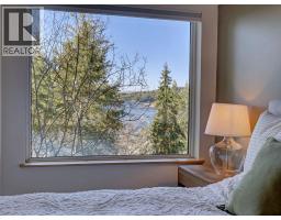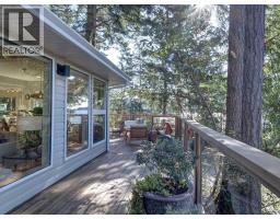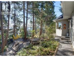 Nestled among the trees with ocean views beyond, this beautifully renovated home captures the essence of West Coast living. Wide plank white oak flooring flows throughout, while the kitchen, living, and dining areas are designed to maximize views and open onto a large, private patio-perfect for BBQing and seamless indoor-outdoor living. The layout features a stylish bar room off the kitchen, a bright office nook, and two bedrooms on the main. The primary retreat is on the upper level, offering ocean views and a spa-like ensuite with a spacious vanity, walk-in shower with radiant in-floor heating, and walk-in closet. Natural, low-maintenance landscaping enhances privacy in this sought-after Halfmoon Bay neighbourhood, on the Sunshine Coast BC. (id:12562)