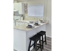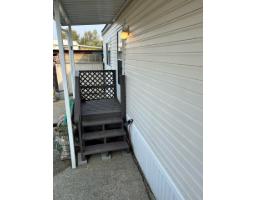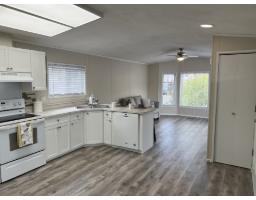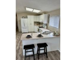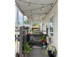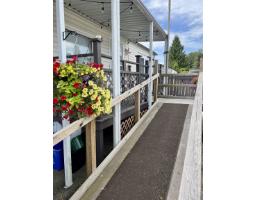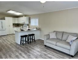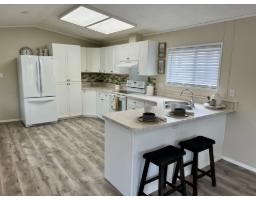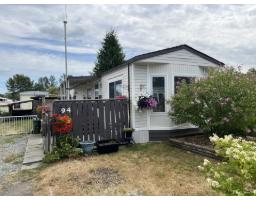 Welcome to Georgian Park, Abbostford's premier 55+ mobile home community. Conveniently located near shopping, transit, walking trails and highway access. Home number 94 a single wide home on a double wide lot situated in the middle of the community on one of the most sought after middle streets with minimal traffic. This newly renovated 2 bedroom (1 bedroom plus office) boasts all new 15mm laminate planking throughout, fresh neutral wall paint, brand new custom kitchen cabinet doors with tile backsplash, brand new decora light switches & plugs. All new LED lighting, fixtures & new window coverings throughout. Updated bathroom with new toilet, newer vanity. Large multi level newly painted decking with wheelchair accessible ramp. Very large 26' x 9' enclosed storage shed/workshop with separate electrical panel & 240volt plug. This home would allow a separate add on living space with management approvals & city permits. 2 small pets allowed, park management approval required to purchase this move in ready home. (id:12562)