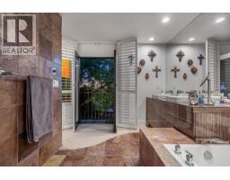 This truly special & completely private home, surrounded with private gardens (honoured by 2019 Art in the Garden ) on 1 of the best streets in Ambleside! Tastefully updated & meticulously maintained, this 3 level, 3 bed, 4 bath home offers an open concept main floor, perfect for entertaining & enjoying the indoor/outdoor lifestyle that blends the interior space seamlessly to the 1,178sf of outdoor living space. The main floor kitchen has been completely remodelled (Bosch 5 burner gas cooktoop/retractable fan/steam oven) & opens to the living/dining rooms that are filled with natural light from the floor to ceiling windows & french doors. Upstairs boasts 14 ft. vaulted ceilings, Juliet balconies, plus a spa-like ensuite & a spacious walk-in closet! California shutters throughout the home & a single detached garage with lane access. The lower level has suite potential, with a huge bedroom (currently used as an art studio/office), a private entrance & a full bath. Walk to shops & West Van Rec Centre. (id:12562)