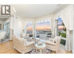 World-Class estate on King George´s Way in West Vancouver´s exclusive British Properties. 9,900 SF, 6-bed, 11-bath on private 26,000+ SF (.60-acre) gated lot. Panoramic views - Mount Baker to downtown skyline & harbour. Classic architecture, manicured gardens, & grand motor court. Highlights incl marble-clad foyer, formal living/dining, great rm w/wet bar, gourmet kitchen & family rm - opening to terrace & ocean views. Outdoor amenities incl pool/spa, fireside lounges, tennis court, & entertainment areas. Luxurious primary suite offers dual dressing rms & his-her ensuites, separate guest & nanny quarters below. Minutes to top schools, golf & shopping. Extras: media rm, study, elevator, 5-6 car garage, A/C, security sys & $1.5M in upgrades. Timeless elegance with modern sophistication. (id:12562)