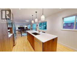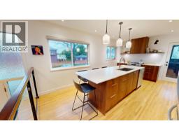Dramatic Mid Century Makeover. This Bright corner home is steps from South Memorial Park and offers exceptional space and design ethos. Gorgeous Walnut kitchen featuring large island with conversational seating, induction range, Bosch dishwasher, hardwood floors, Valour gas fireplace. 2 spa-like baths up with heated floors. Garden level features media room with gas fireplace, handy 3 pce bath and 4th bedroom. 1 bedroom self-contained unit. Heat pump with AC in 2025, on-demand tankless hot water in 2026. New 200 amp electrical and plumbing upgraded in 2022. Big private deck over double garage and fabulous garden space. This is a good one. (id:12562)