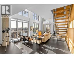 $1,505.89 MonthlyWorld Class Penthouse at The Metropolis. Designed by renowned architect Peter Cardew. This is true piece of architectural history. The home blends smooth concrete and glass with organic metals and warm wood accents. Soaring 18 foot ceilings frame stunning city, mountain, and water views. The open concept layout features a large offset kitchen ideal for entertaining. A mezzanine walkway separates two bedrooms and a flexible space perfect for a home office or retreat. The spa inspired ensuite offers an oversized walk-in shower. Bespoke shelving, custom cabinetry, and a natural wood feature wall accent the dramatic floating staircase of metal, glass, and wood. A third bedroom or expansive media room with sliding walls completes the space. Expect to be impressed. (id:12562)